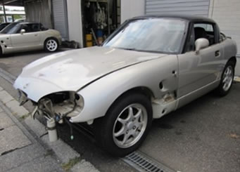 入庫したカプチーノは 試乗 内外装の不具合や傷み具合を確認しながら